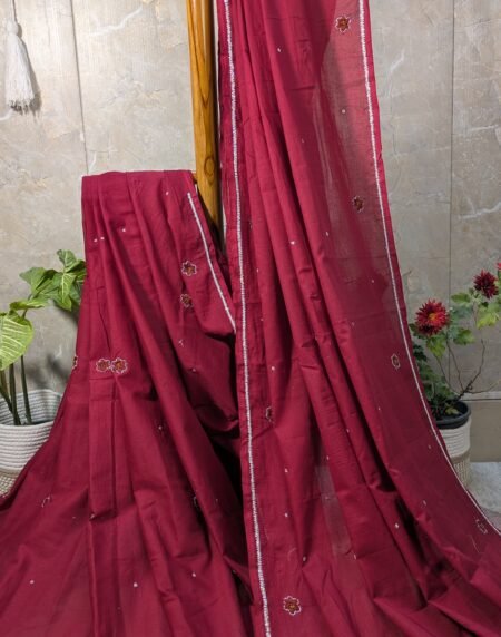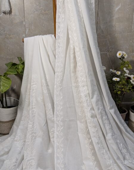 "AABHA"CHANDERI CHIKANKARI SAREE EMBELLISHED WITH PEARL AND CUTDANA