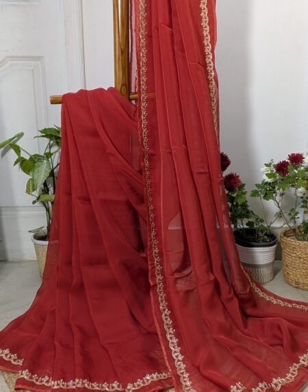 "SINDOORI" CHANDERI CHIKANKARI SAREE