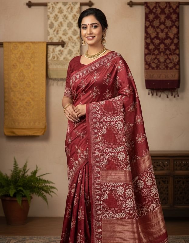 ✔️ 1 Red Tusser Silk Saree (5.5m)