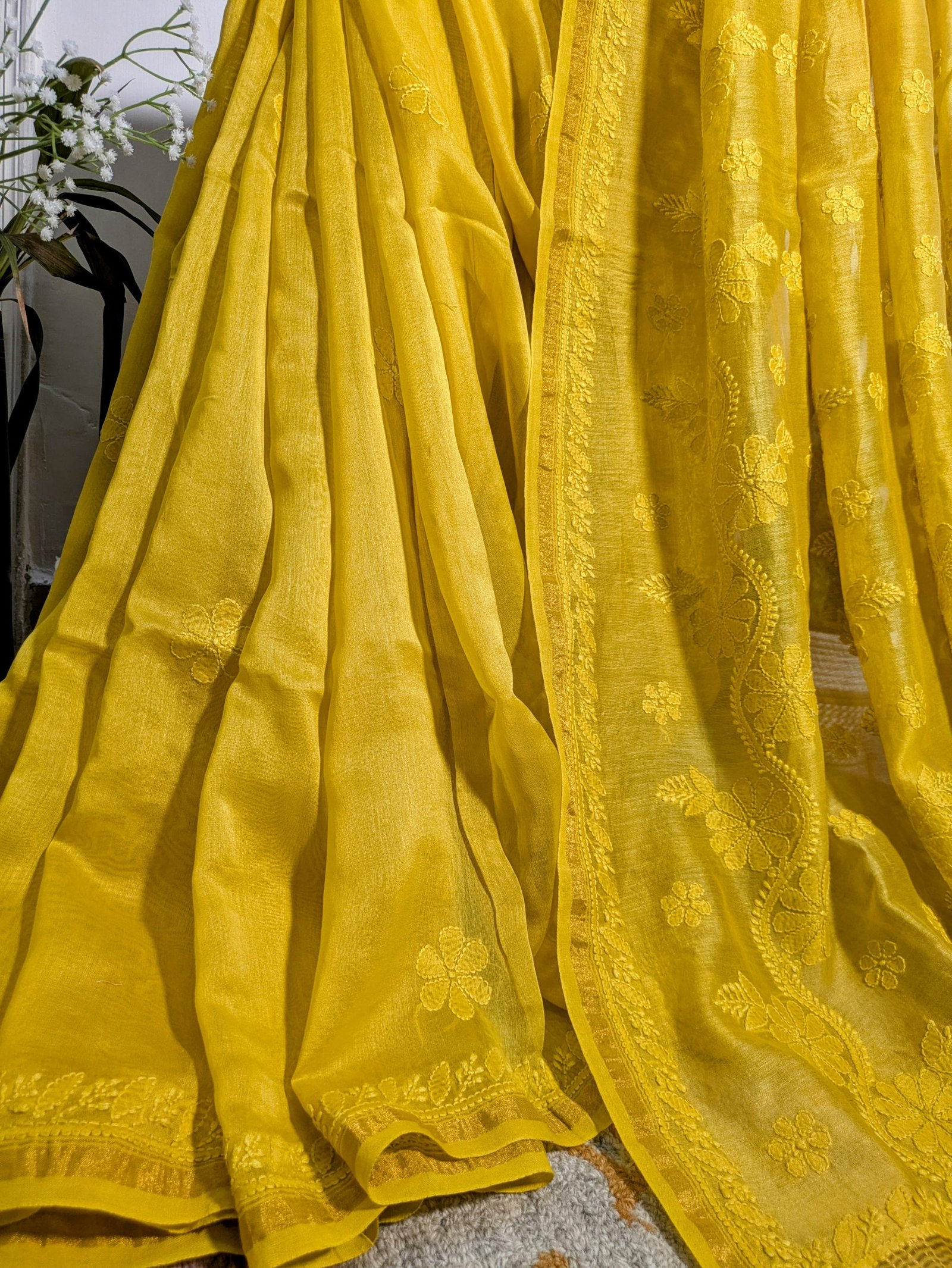 ✔️ 1 Yellow Chanderi silk Saree (5.5m)