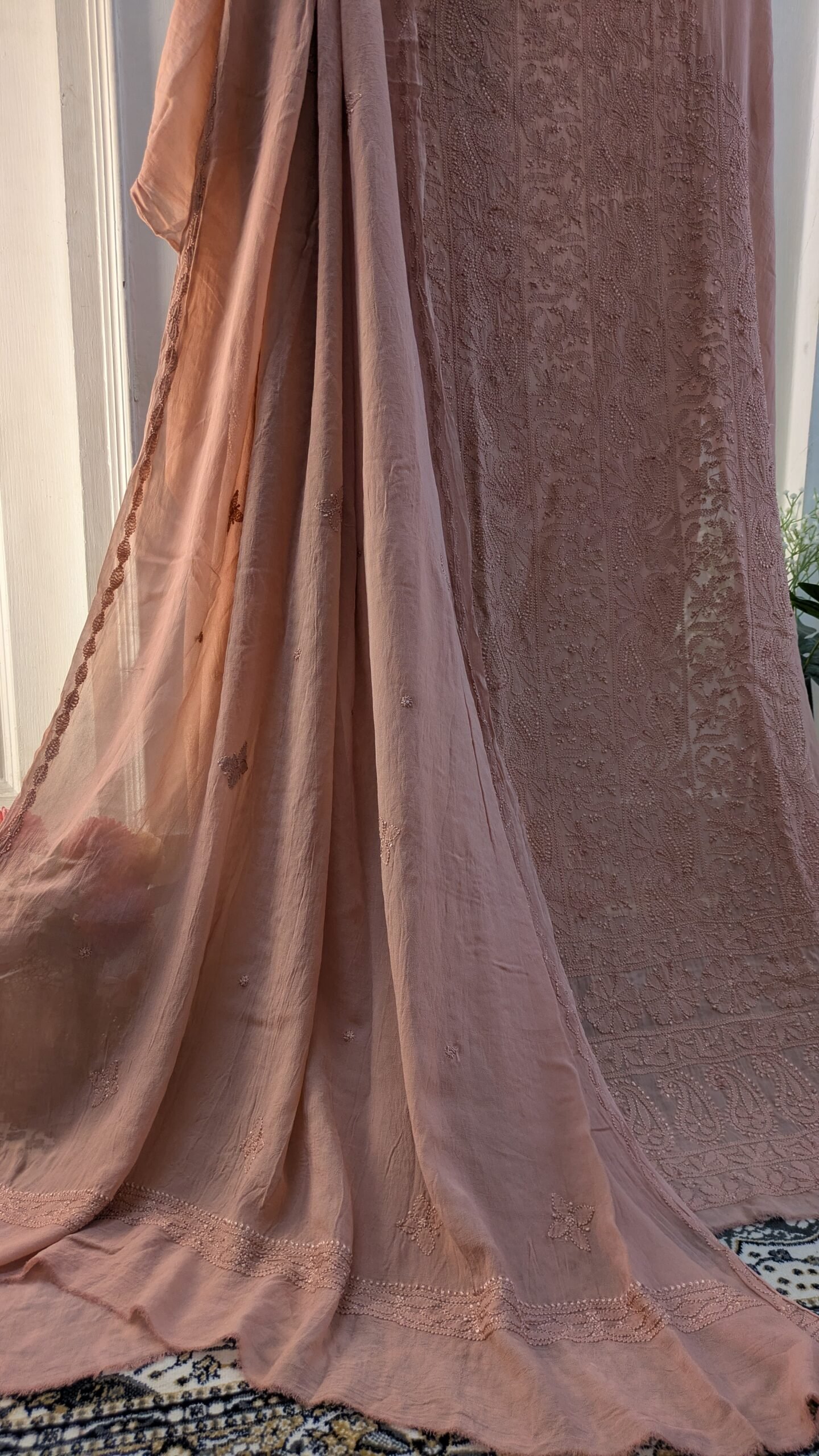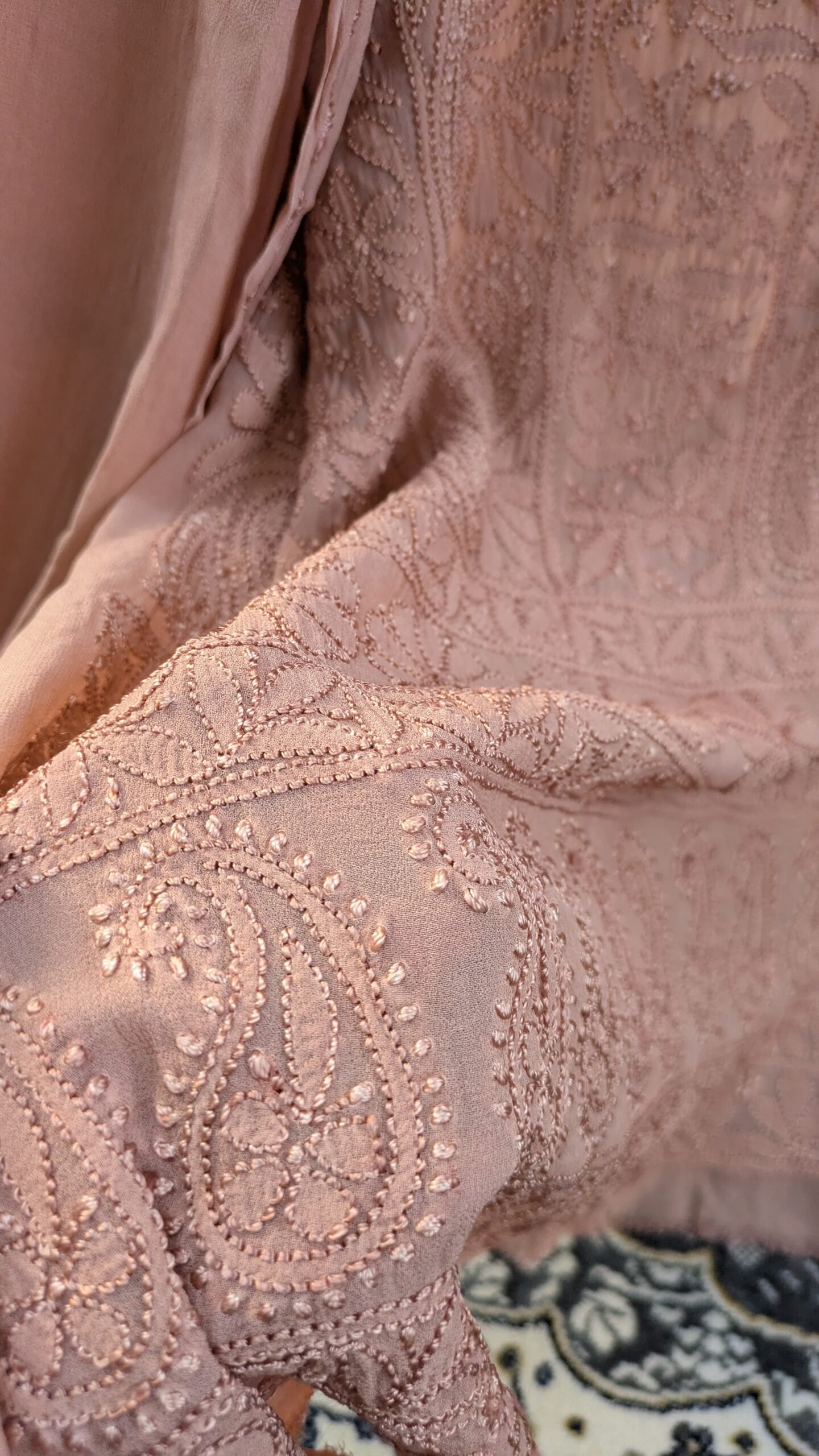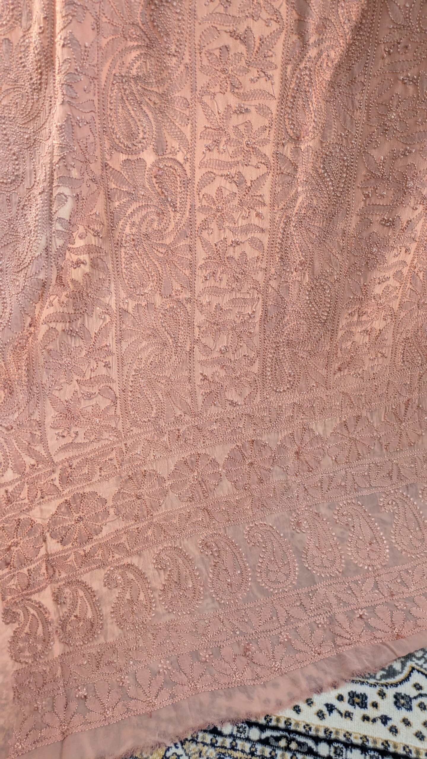 - Chikankari Embroidery: Adorned with intricate tone-to-tone thread work, reflecting the timeless beauty of Lucknowi craftsmanship.