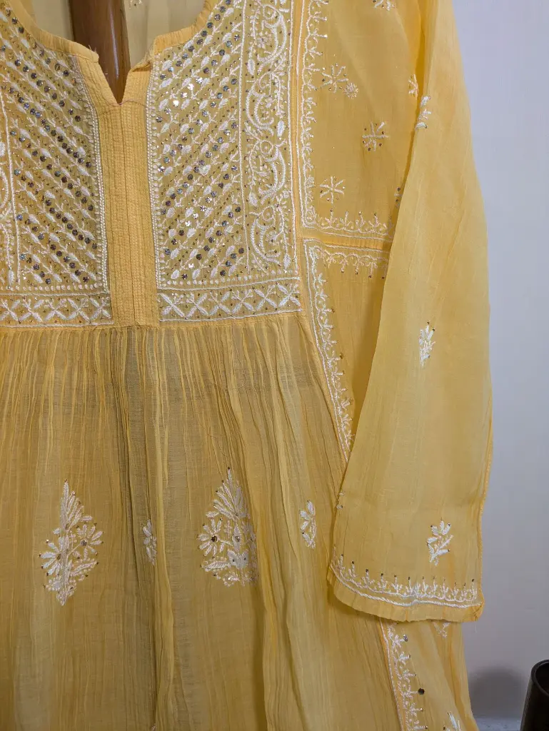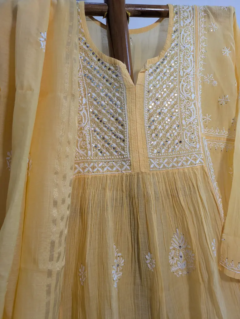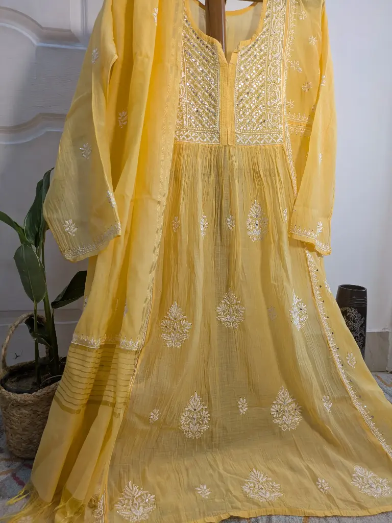 Infused with the radiance of sunshine and the charm of heritage handwork, this yellow semi-stitched mul cotton kurta set with dupatta is a celebration of soft elegance and timeless craft. Made from pure mulmul cotton, this fabric is known for its feather-light texture and breathable quality, making it ideal for all-day comfort in any season.